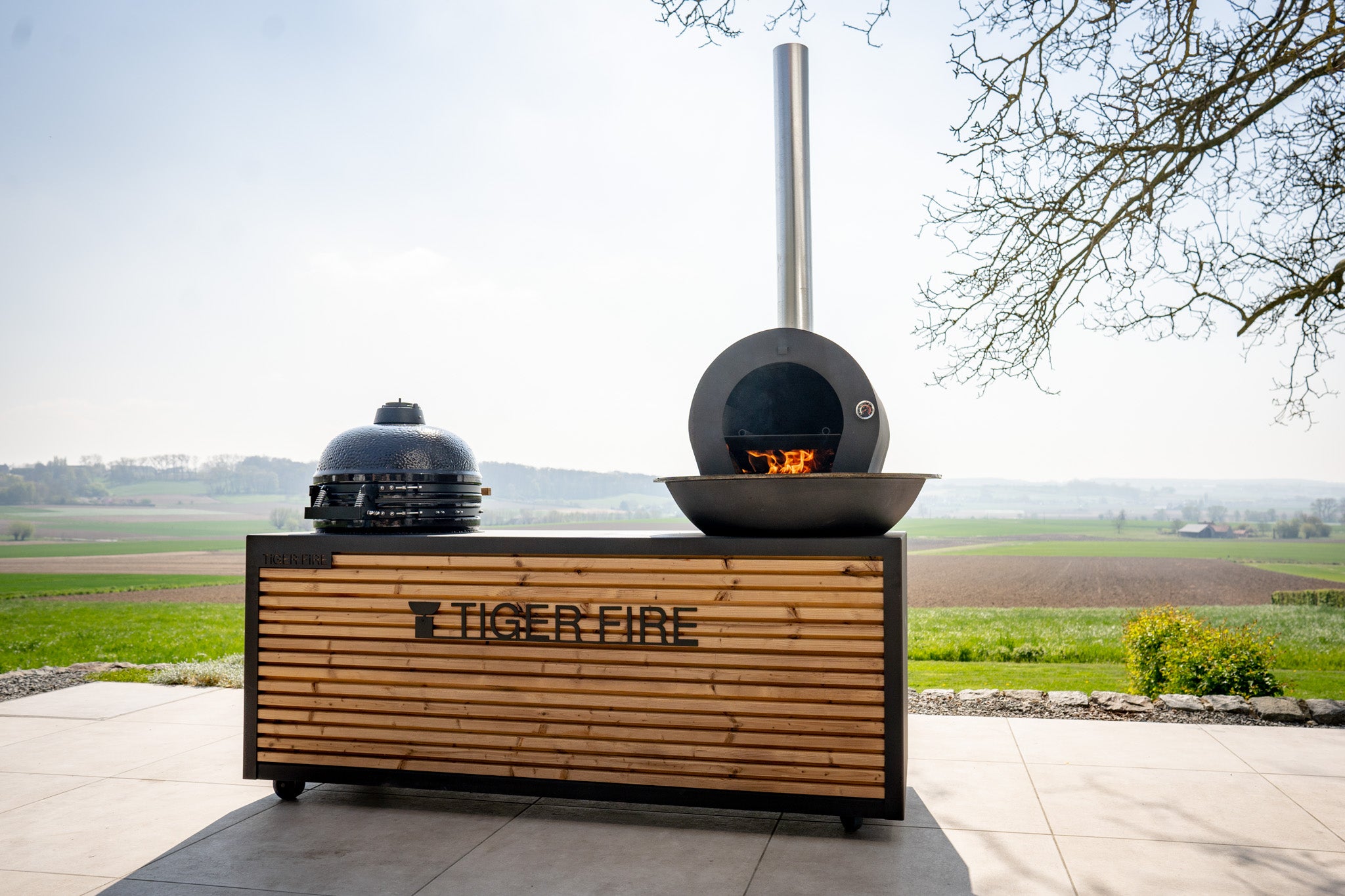 TIGER FIRE BLACK KITCHEN – Cuisine extérieure design avec Brasero plancha & Kamado
